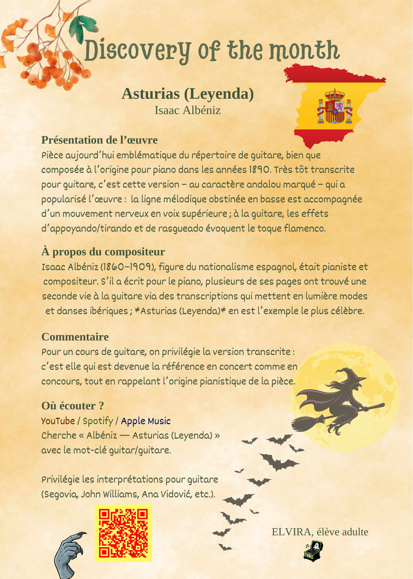 Il est question de faire quelques recherches en lien avec la guitare, de prendre conscience de son ressenti lors du cours, de partager ses connaissances et bien plus encore !
